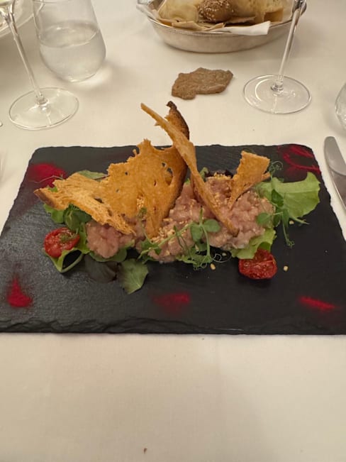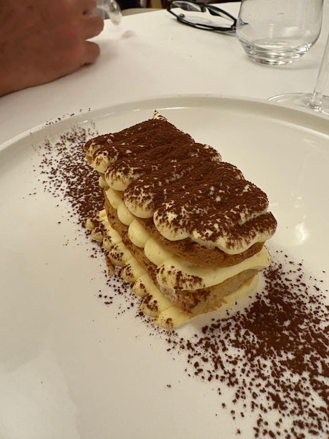 10/10The quality and presentation of the food were outstanding, and the wait staff had just the right combination of professionalism and warmth. Our starter of bacalà was crowned with cuttlefish chips, an inspired briny punch to the delicate creamy fish below. The risotto was chock full of scallop slices and chanterelles and dotted generously with truffle slices. We were almost too full for the signature tiramisu but were glad we didn’t skip it. A delightful sparkling wine from the region was the perfect accompaniment for everything and a reminder that this was a special occasion. If you’re in Padova, don’t miss this place.