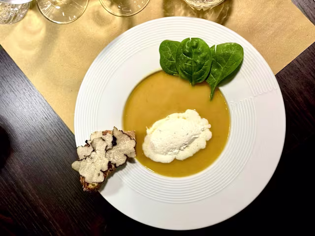 - Velouté de lentilles, espuma de raifort et croustillant de lard