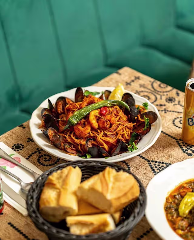 - Couscous, fell ou spaghetti, kaftaji, frites, salade
