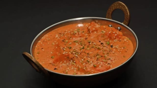 Pollo en trozosmuy tierno, marinado en autentica tandoori con cebolia, pimiento rojo y verde.
