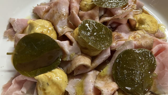 Pan brioche, lingua, salsa verde e mostarda di stagione