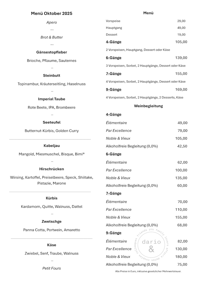 10/10I dined at "Dario &" during my stay in Germany in September, 2024. Everything was perfect ! The foods were creative and superb. I chose wine paring and it was so good. Moreover, the service was not only sophisticated, but also warm and hearful. The dinner at "Dario &" became my memorable time in Aachen. If I have a chance to visit Aachen again, I will absolutely visit here.
