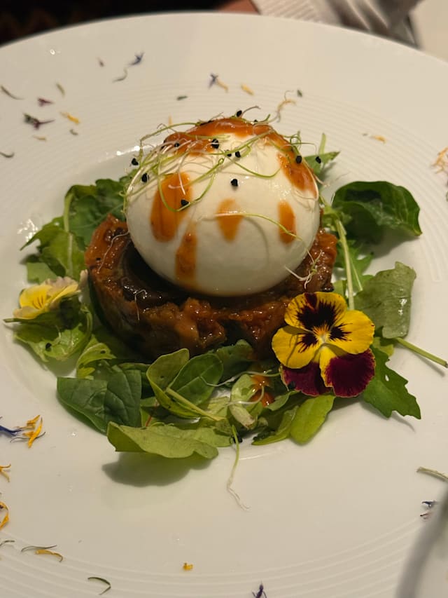 10/10Beautiful food, beautiful atmosphere. We ordered 4 dishes and 2 wines and it came to F70 which was great given the good quality of the food.