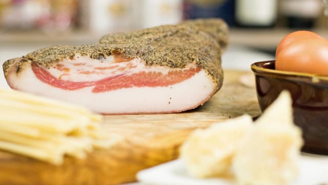 Lo elaboramos con guanciale, yema de huevo y queso.