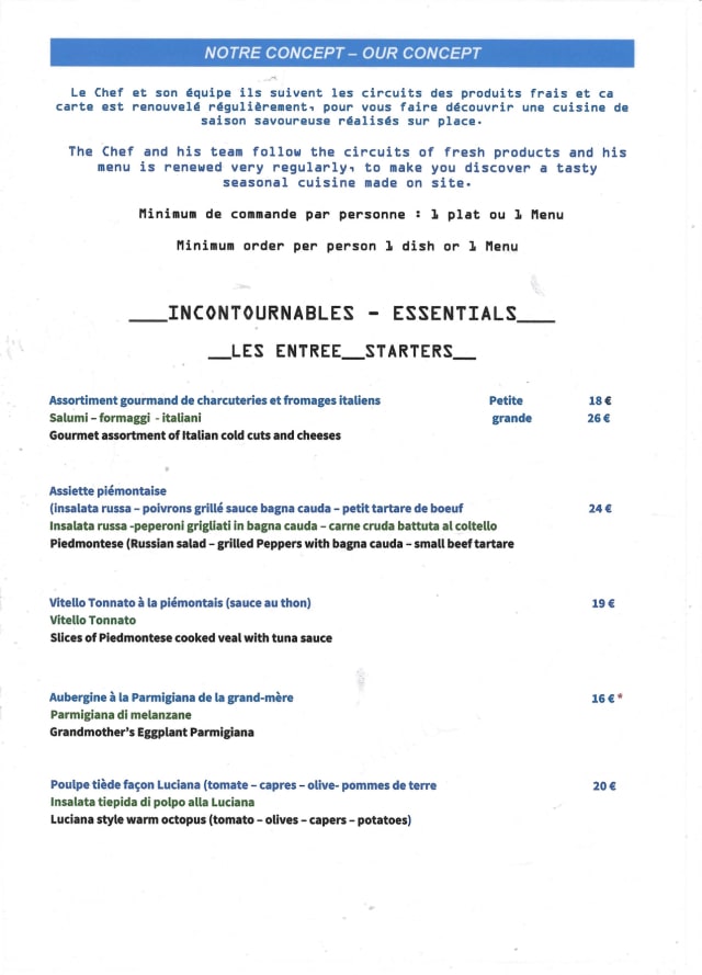 Cher client, nous sommes désolés de lire votre avis, même si nous ne partageons pas vos remarques. Le vitello tonnato que nous proposons respecte la recette traditionnelle piémontaise, avec une sauce à base de thon, câpres et anchois — ce n’est pas un “sandwich au thon”, mais un plat emblématique de la cuisine italienne. Concernant notre pinsa, aucune sauce industrielle n’est utilisée : tout est préparé maison avec des ingrédients frais, comme toujours dans notre cuisine. Enfin, certaines pâtes issues de régions comme le Piémont ou le sud de l’Italie peuvent sembler plus “huilées”, mais cela fait partie du style culinaire de ces territoires. Nous sommes néanmoins ravis que vous ayez apprécié le poulpe et l’amabilité du service.