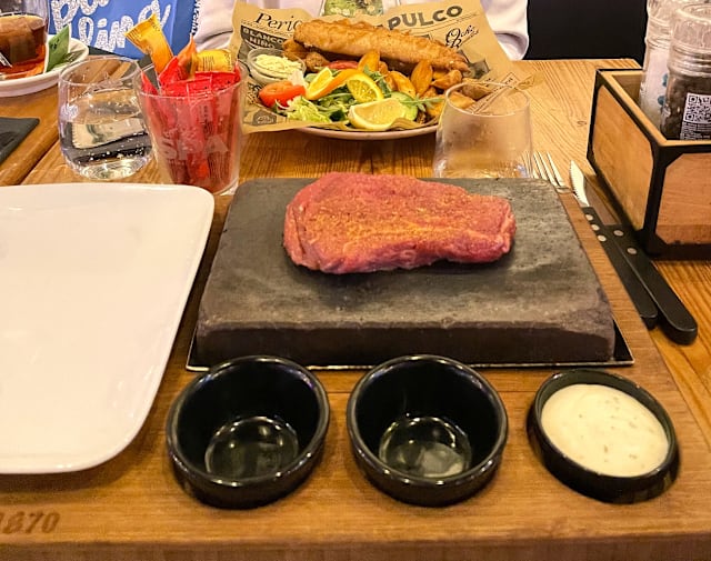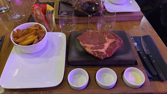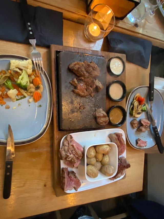 9.5/10nice place and food. we reccommend to cut small slices and Cook them on the stone one at the time