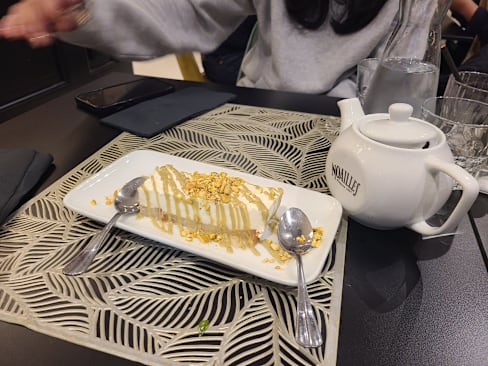 8.5/10Very good vegetarian mezze: cremy hummus and aubergine purée. The cheese cake is the best I’ve had, light and with a nice pistachio flavor. Nice service, just a bit slow but it was a busy Sunday lunch