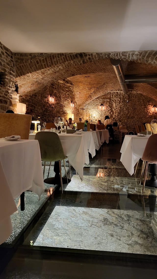 10/10Our second visit - we ate here the first and last nights of our five day stay. It’s a beautiful old interior with glass floor panels revealing the cellars below. Staff are very friendly and the food is great!