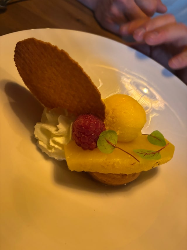 7/10The atmosphere was nice and cozy , our waiter was very friendly and professional. But we found the menu way too long 4 hours for a dinner during the week! A 3 courses menu more creative and surprising would have been perfect, the food was a bit outdated and too classical ! Little disappointment: a rose was given to every woman but not to me , it gave a strange feeling when we left