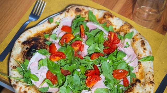 Coppa di pane, base verde. I gusti sono a scelta: carcio, cotto, crudo, fontina, funghi, funghi sott’olio, gorgonzola, grana, mais, melanzane, mortadella, mozzarella, olive, polletti, pomodorini, rucola, salame dolce, salame piccante, scamorza, tonno, verdure grigliate, würstel, zucchine