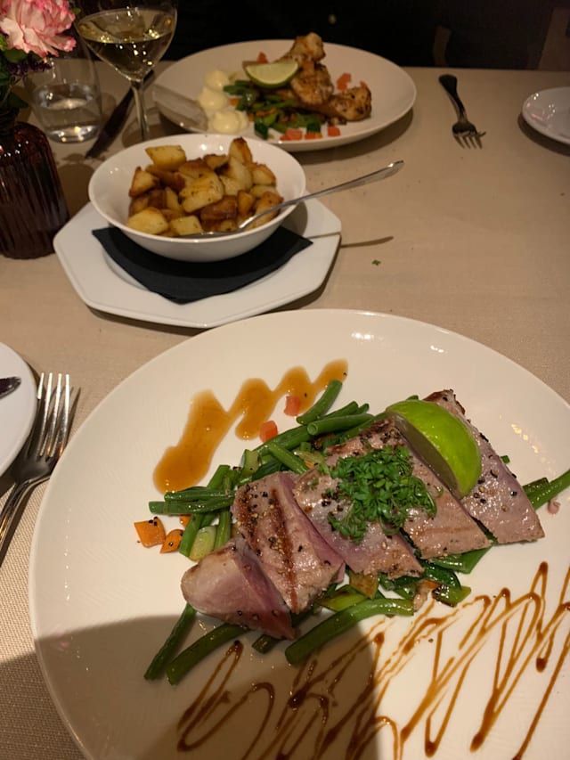 9/10The chef brings all available fresh fish to your table for you to chose from. Much appreciated. We started with oysters, then scallops, then tuna and sole. As dessert a pannacotta. We choose a nice Australian Pinot Noir to go with the meal. Great food, good service and a nice atmosphere! It comes with a price, which I happily paid.