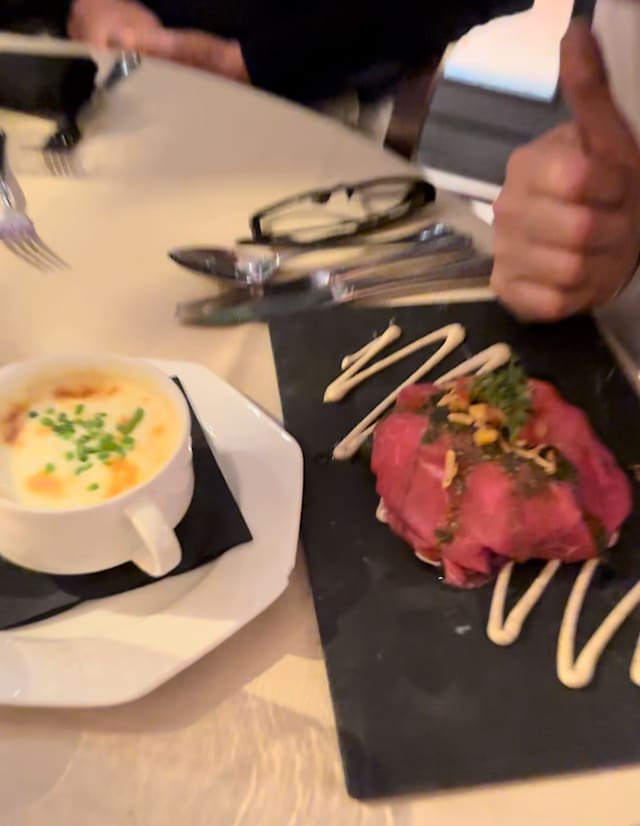 9/10It is wonderful, each time I visit this restaurant, that the chef comes to the table to present the ‘catch of the day’. We started of with oysters, then coquilles and finally tuna. Each coursecwas delicious. Highly recommended!