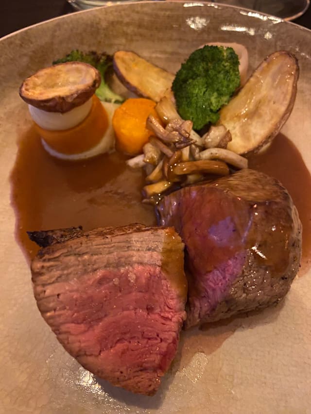 - Creek Stone Steak (180g) met romige pepersaus en seizoensgroente