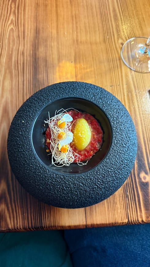 7/10The location is wonderful. The service was „nice“. The food is decorated very colorful and looks great -but - it just does not taste as good as it looks and somehow the combinations don‘t really fit. The wine we chose was way too expensive for what it was.