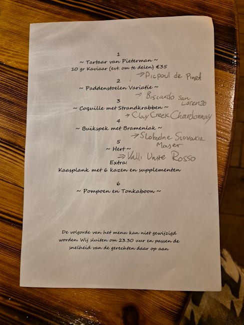 10/10This place is in a cozy 1600s building with a lovely fireplace and candlight. The owner (?) made us feel at home with our shared interest of nice wines from Germany and other places that are typically not as appreciated by the Dutch customers. There are a few choices here for starters and main courses unlike many places in Groningen that offer the surprise menu. But there are vegetarian and fish options in each category. Each of our items were nicely presented and delicious. We commented on the pumpkin side dish and were rewarded with a large pumpkin from her father’s garden to take home. A lovely restaurant for a monthly visit, not just a special occasion.