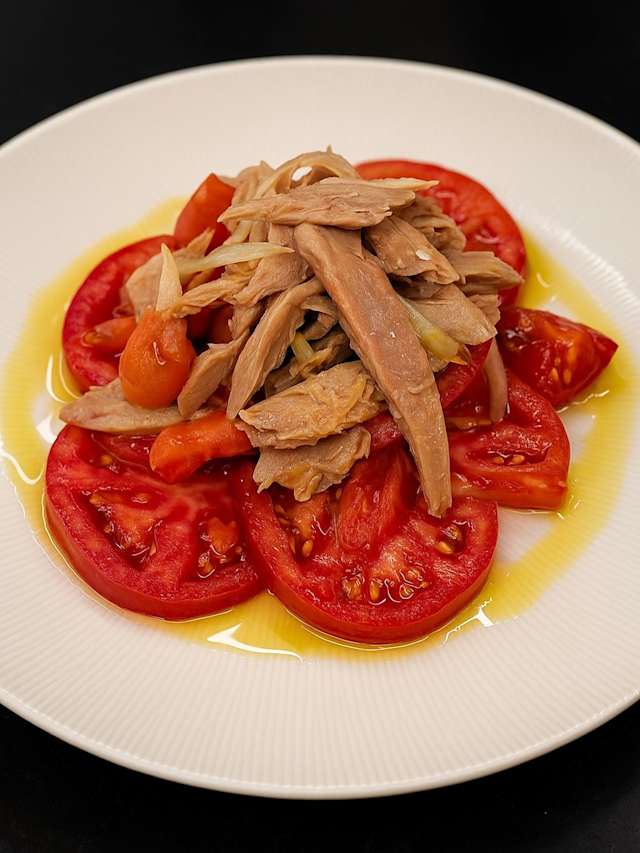 - Tomate rosa con ventresca y cebolla morada