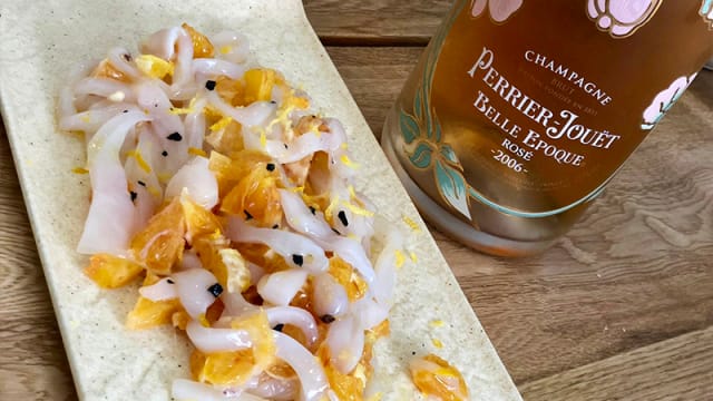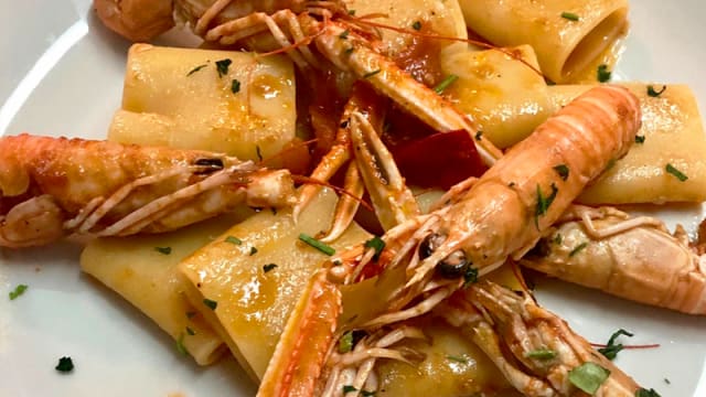 - Tartare di tonno, gtartare di salmone , tagliatelle di calamaro agli agrumi, gamberi