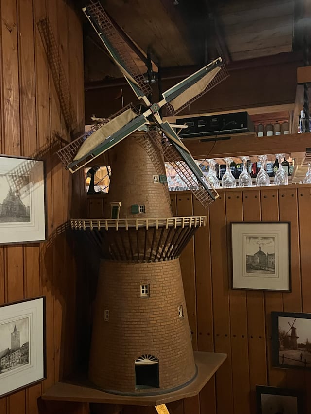 10/10Server was very attentive, but food took a while to come out, even though there were only two parties of 3 in the whole restaurant We didn't order appetizers, so no food until the entrees... not even bread. Portions were a bit small for the price, but very delicious. It's a novelty to eat in a windmill, so you're paying for the atmosphere too.