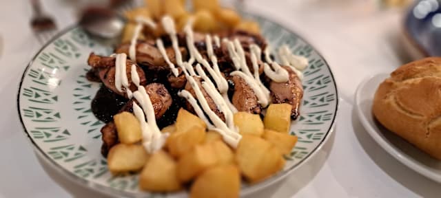 9.5/10A lovely small restaurant in the centre of Oviedo with a qide variety of meals inspired by flavours from the North and South of Spain. The waiter was very kind and gave us advise about what to choose and gave us some tapas while we were waiting for our order. The rice we had (black rice with squids) was tasty. 🥰
