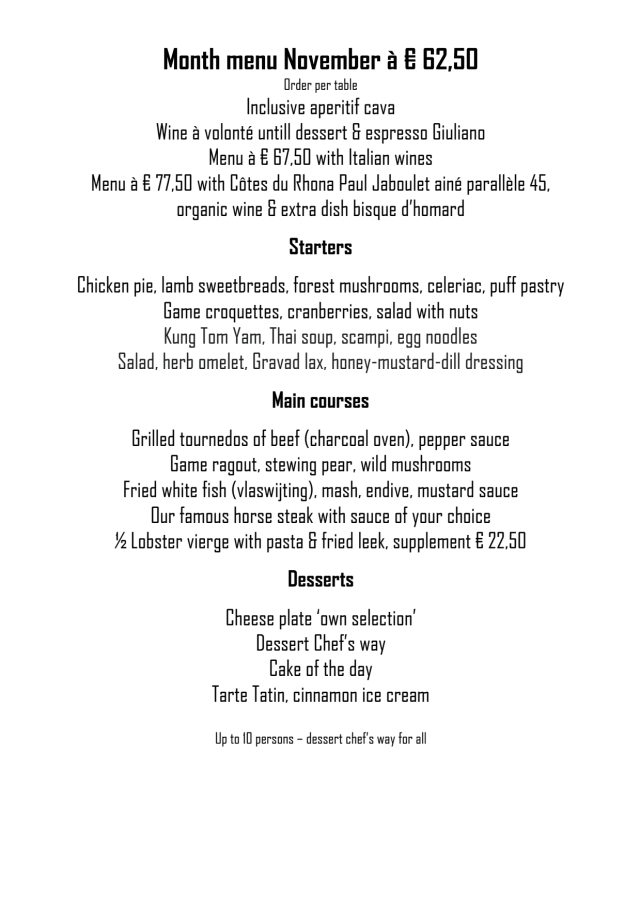 9/10We regularly choose to dine at De Peerdestal and are never disappointed. The restaurant has a relaxed elegance and the service is excellent.