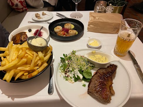 8.5/10For starters the foie gras and the scallops which were both great. For mains I had the aged Entrecote with a Tipsy beer which accompanied it perfectly. Tarte tatin for desert. Would definitely repeat
