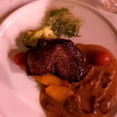 8/10My horse fillet was excellent - very soft (medium rare as recommended by the house) and tasty. My friends had medium-well done horse steak and found it a bit chewy. Presentation is very classic, such as sauce Bernaise, French fries, and a tiny vegetable side. It's a pity there aren't more veggies available as an additional side. Overall, if you want a classic, traditional, meat-centric meal, De Peerdestal is a good option, especially if you love horse meat. Service was friendly but a little bit clumsy, you may have to ask twice to get what you want. The interior is very nice, old-fashioned elegance; a table on top of the balcony has a very airy feel.