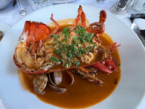 9/10Food was great. Rich spicy broth for the lobster and shellfish. The lobster really should have been cracked before putting it in the stew. Was very messy to have to fish it out of the stew.