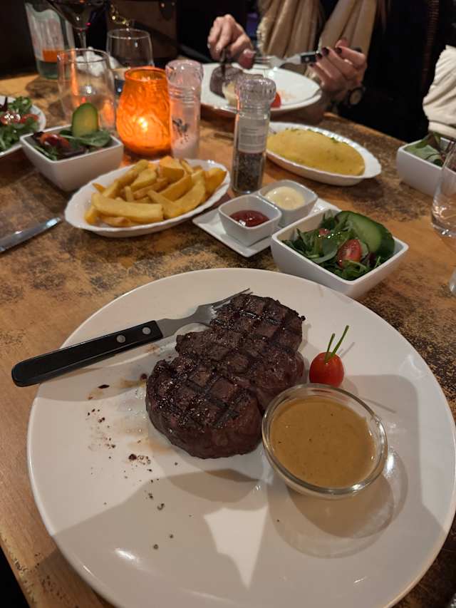 8/10Meat from various origins of prime quality and exactly grilled according to the order. The pepper sauce (standard) was OK but I’ve had better (yet, also worse). A more local sourced choice of meat would be a welcome twist and also might take off just a little of today’s sustainability concerns some might have about a meat oriented restaurant. Some more different cuts would also add to the experience and enrich a tasting choice on the menu. That said, if you’re into a good piece of meat and don’t mind too much about the somewhat off-centered location (with the benefit of cheap parking) and the setting (on the evening of our visit the place was pretty empty - maybe also due to the holiday season), you should not hesitate. The service was absolutely lovely and we enjoyed our bottle of wine picked from quite a decent wine list. Pricing? Yeah, restaurants in Amsterdam aren’t cheap and you pay for a prime cut too. I will keep this place on my list of options…