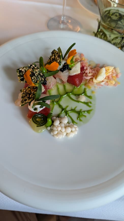 10/10The restaurant is beautiful and in an amazing historic building. We got the 8 course tasting menu with wine pairings. The presentation of the dishes was spectacular. The food was delicious and the wine pairings were lovely. The food was on par with any of the Michelin star restaurants I have visited!