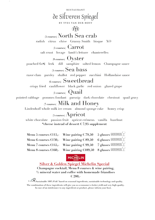 10/10The food was perfect with wine pairings, I have done a menu course before in Europe, this was one of my favorites so far. If you are in Amsterdam and you love and appreciate good food go to De Silveren Spiegel, They really complete my birthday week in a beautiful city of Amsterdam. The wine parings brings the experience to completion.