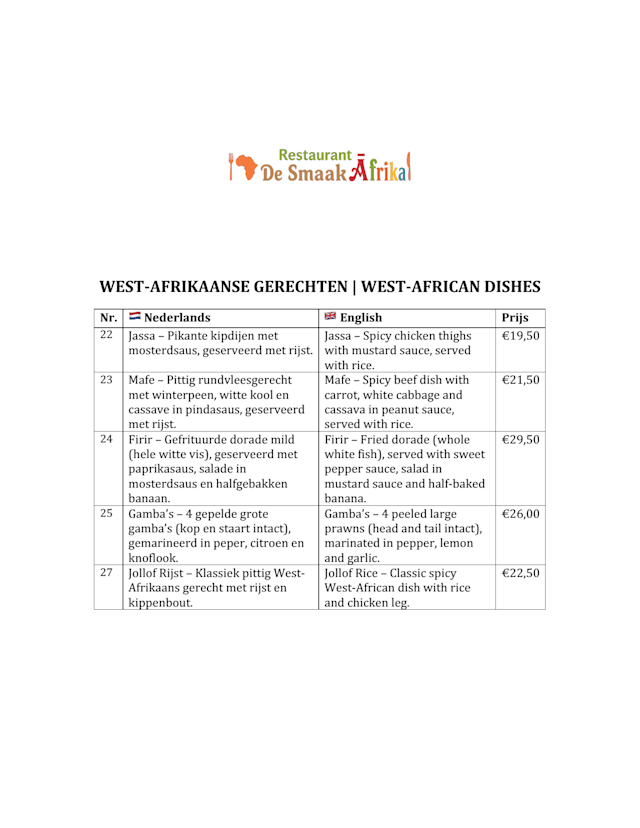 10/10This was our first experience of more traditional African food and we loved it. The service was excellent, friendly and attentive and the food quality and taste was great. We will be back when we return to Rotterdam and we will recommend it to our friends.