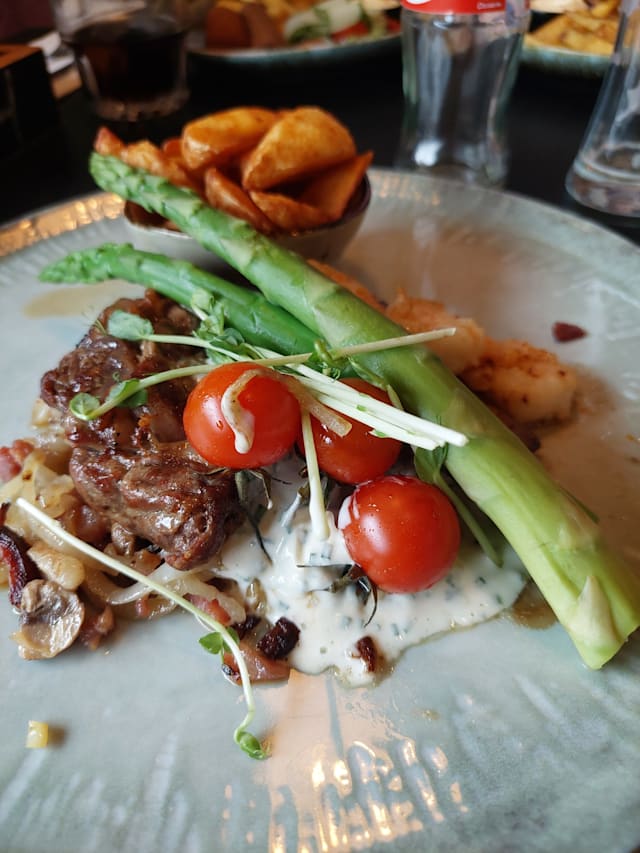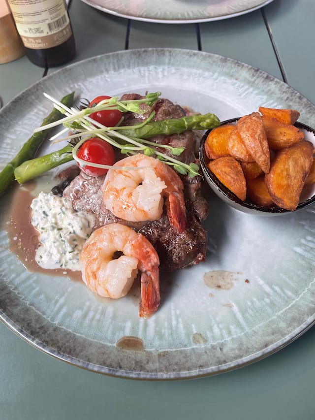 8/10Nice seating, very well cooked/grilled fish and meat. Finally a restaurant that understands how to play music, not too loud and pleasant recognisable music!