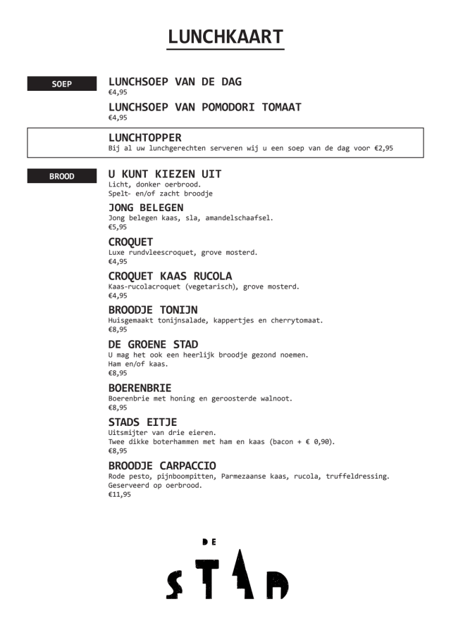8/10De Stad is within walking distance for us. We felt very relaxed and we were well served. The food was good and a little surprising. Our evening flowed well.