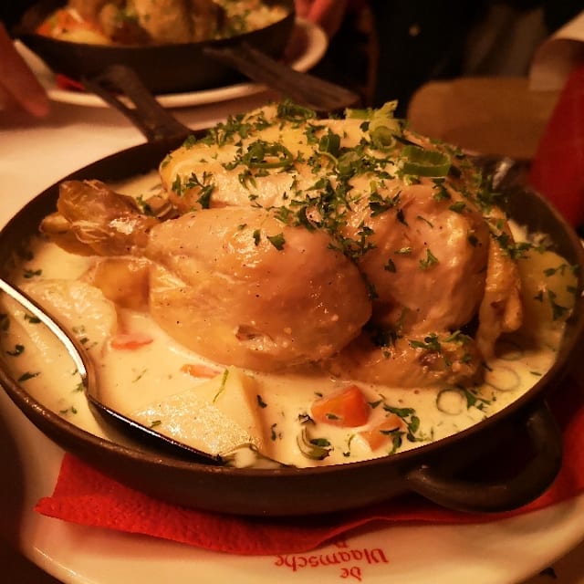 5.5/10The atmospher was very nice, however the service was really slow (we wait over than 50 mins just for four main dishes). All the prices are crazy in relation to the kind of food served and if you vegetarian DON’T GO THERE. We also decided to drink only a bottle of wine because the price of 0,5l of water was 5€. Maybe the only plate good is the fleming beef stew.