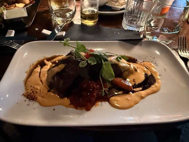 - Vegan foie gras geserveerd met granny smith chutney