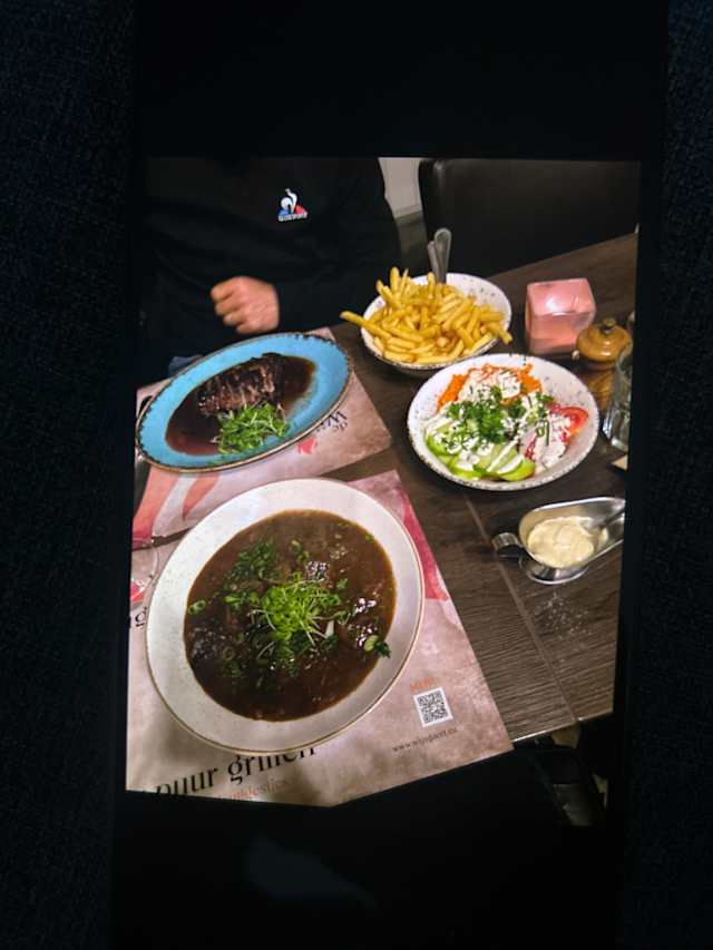 4.5/10We each ordered the "Scottich' ribeye medium rare. What we received was raw. Only cooked enough to be slightly brown on outside. So raw it was very difficult to even slice through with the knife. Sent back and was returned burnt back throughout. They then sent us 5 very small slices of pre cut meat that were perfectly done but no where near the quantity of the two 45 euro steaks we had ordered. The original serving was undoubtably some kind of meat but, in hindsight, seriously doubt it was ribeye. Was not even shaped like any ribeye I have ever seen. Maybe the "Scottish" qualifier should have been a clue? Too bad because this establishment was recommended to us by a friend who had dined there. Hopefully a one time fail,on their part but with so many other choices in Brugges, I will not be returning.