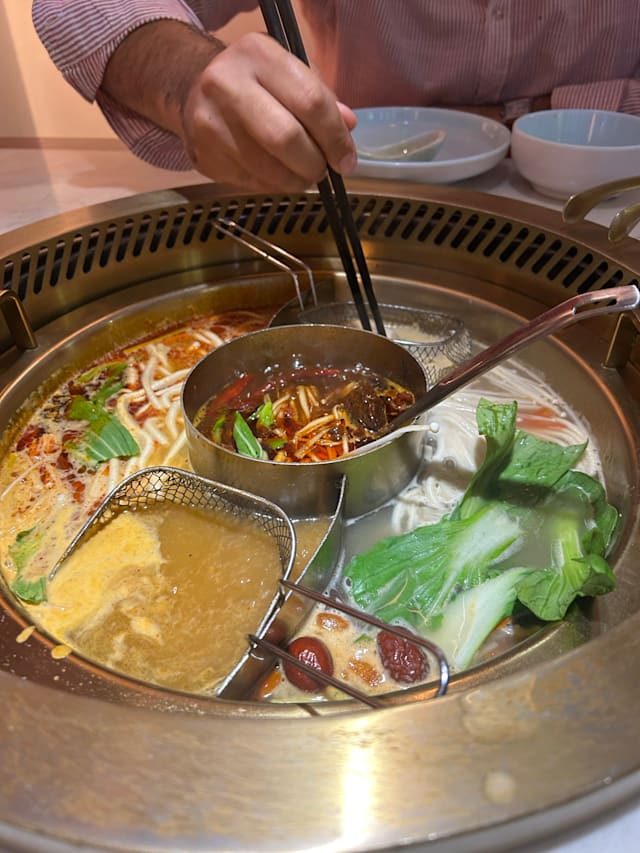 9/10Ambience and interior decor is beautiful. The aesthetic is there. Food was very tasty and hand made noodles were amazing. Portions are good. They gave us free fruits. Price is definitely on expensive side and not every item is covered by fork discount. There’s also a service fee/fee for sauces etc which is unnecessary but if you are really craving hot pot the meal was satisfying! Staff were kind.