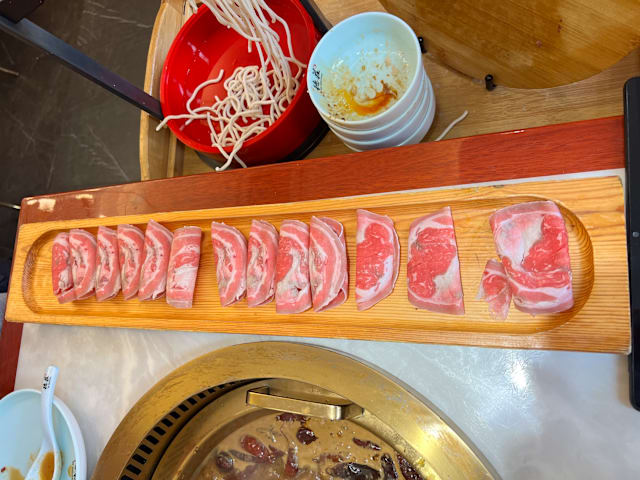3/10Tho was the worst hot pot I have ever been to and I have been to many! The raw meat came out after 30 minutes From ordering. The tea was dead. The first plater was meat displayed on a wooden board held upright with the meat sticking to the wood. Not only did it look gross but the flavor sadly matched the presentation. The next platter was meat that was chewy, tasted bad and had oxidation am/or freezer burn which i have never seen on meat at a hot pot. Additionally, there are flies and gnats all over the restaurant and in abundance at the seasoning buffet. Worst Fork and Hot Pot experience ever. Just gross!!