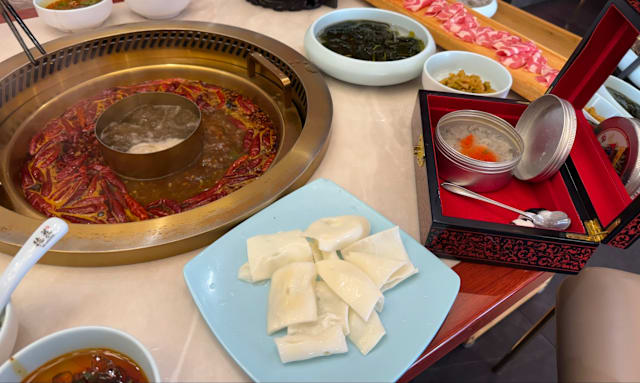 10/10delicious fresh meat and seafood and the selection was huge, it was hard to choose! the cost adds up, so having the discount through the app was perfect otherwise we would have been more selective of what we ordered. super happy with everything and tried some new things. fun experience to have the hot pot in the middle with three different broths and sauces on the side. it was difficult to know what to do at the start but the staff was super helpful in telling us the 'cook' times for each item and explaining everything from the start. thank you for a lovely dinner!
