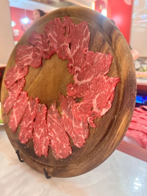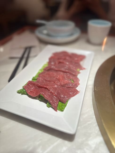 10/10delicious fresh meat and seafood and the selection was huge, it was hard to choose! the cost adds up, so having the discount through the app was perfect otherwise we would have been more selective of what we ordered. super happy with everything and tried some new things. fun experience to have the hot pot in the middle with three different broths and sauces on the side. it was difficult to know what to do at the start but the staff was super helpful in telling us the 'cook' times for each item and explaining everything from the start. thank you for a lovely dinner!