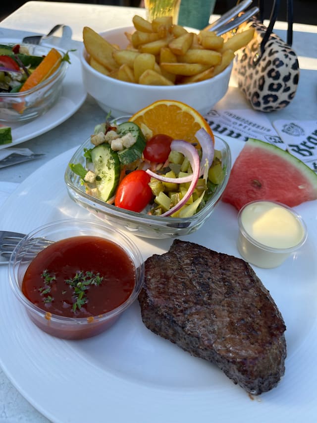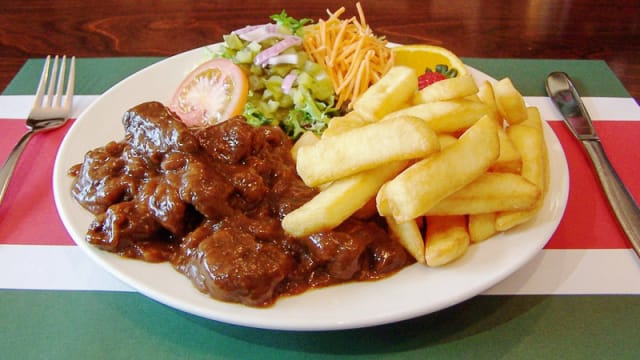 9/10Somewhat out of town but a great little find. Good value 3 course menu or a la carte. Tried local zuurvlees stew - excellent, schnitzel-excellent and steak - faultless. Perfectly cooked.