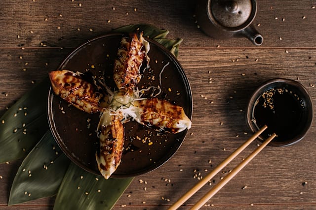 Gyoza de pollo al estilo osaka y teriyaki de naranja (4 ud)