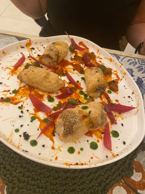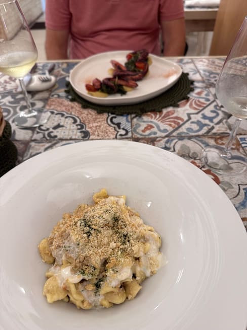 10/10Great little restaurant with a warm welcome, a modern ambience, and delightful service. The food was delicious - pumpkin flowers stuffed with cheese, amazing! Grilled octopus with vegetables, delicious! And bombettes (thin pork rolled with cheese inside!), wow, served with delicious though cold vegetables - a must! The wine list focuses on local wines, we had a Nero de Troia, excellent! Loved our dinner, and told our hotel host and some other guests about it - they will be going there after seeing us drool at the memory of our dinner there! Simply: GO!