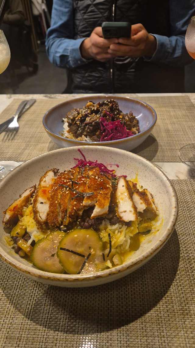 - Poulet pané à la japonaise fricassée d'haricots azuki. Riz thai sauce curry gingembre lait de coco. Courgette sautée.