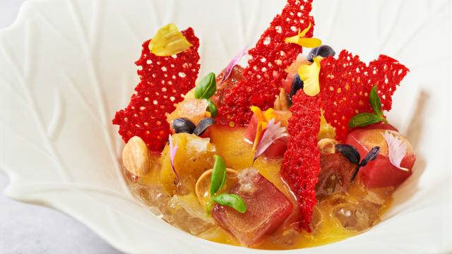 Explore the chef's selection menus with diverse dishes at fixed prices. Some are bookable via TheFork, while others are available onsite.