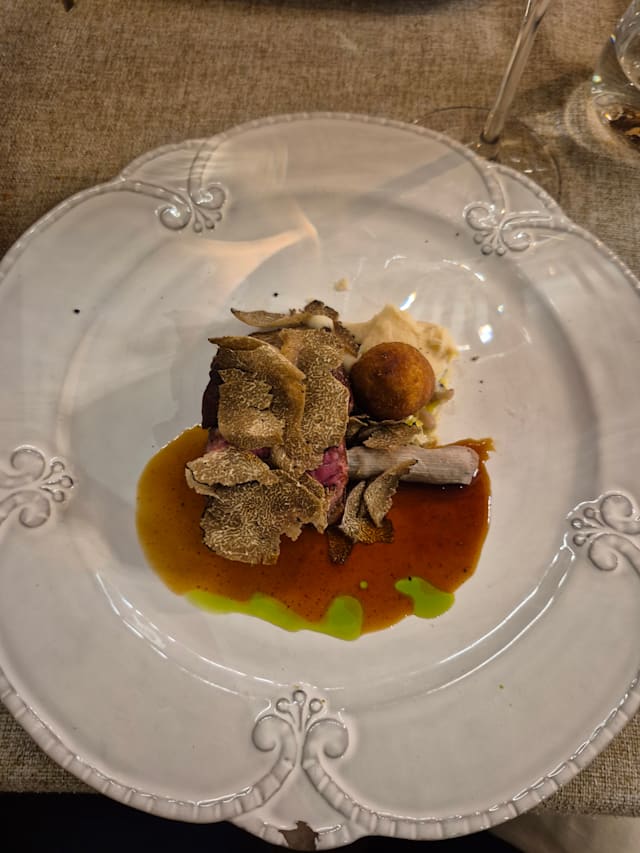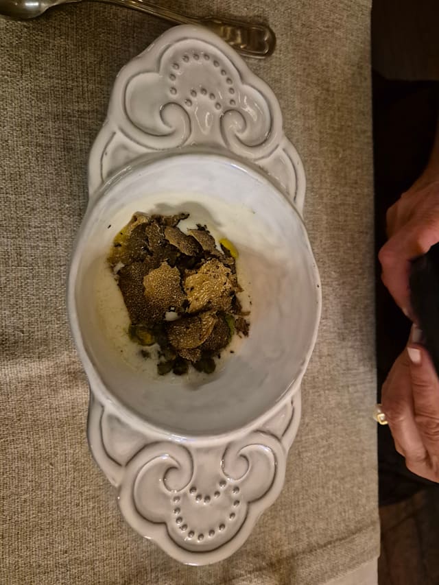10/10+2We had an absolutely exquisite experience. The service was impeccable but the food outshined everything. We chose the ala carte option and had several items from the cheese and truffle menu. The service was amazing and truly allowed for an elegant dining experience. Our waiter chose a wine to go perfectly with our first cheese dish. Then we had a beautiful bottle of brunello to finish our dinner. The wine list is extensive today the least. I am going to recommend this to all of my friends who visit Florence!! (And don’t let the fact that this is near Uffizi let you think this is a tourist trap…it’s definitely not and it’s for guest with sophisticated dining tastes).
