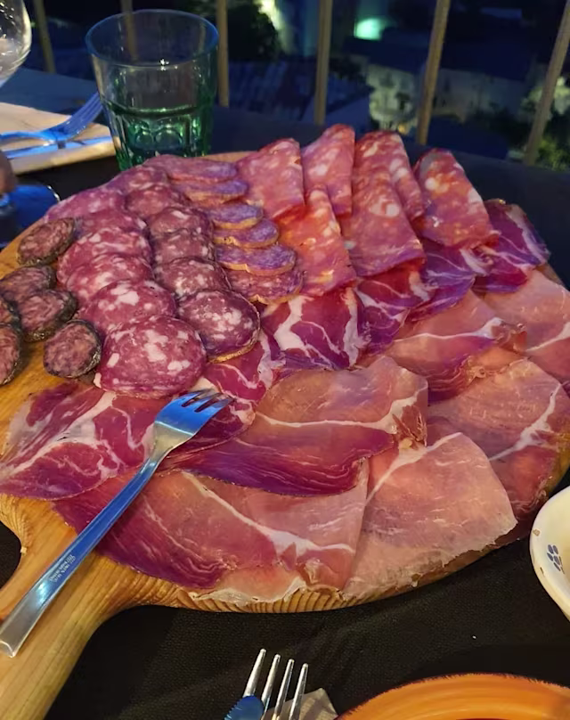 - Prosciutto crudo nostrano, salame aquilano, salsiccia secca di fegato, lonza, salame al montepulciano e salame al tartufo