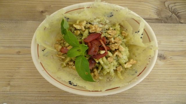(Pesto di pistacchio, fiordilatte, norcia, grana, pomodoro secco)