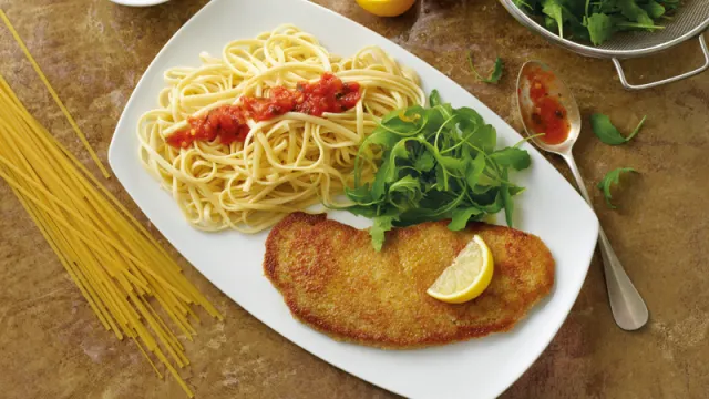 8.5/10The restaurant is fabulous for a daily dining spot located near a shopping mall. Fresh and crispy, I'd describe it as honest food, akin to what you'd whip up at home. It's perfect for a family evening out with kids. I appreciated its spaciousness, though it does get crowded during lunchtime. Friday evening was particularly relaxing; I indulged in a glass of white wine and Grappa. We started with Italian antipasti, followed by an "escalope de veau panée" with bacon and cheese. It wasn't the most authentic Italian dish, more like a Schnitzel, but the taste was delightful. If I had to nitpick, it was a tad overcooked or perhaps not tenderized enough (if I recall correctly, veal needs to be beaten to make it tender). The linguine were cooked just right, al dente as requested, with no sauce—what could go wrong? But what truly mattered was the freshness of the ingredients; every bite of the dish felt crisp and flavorful, especially with the addition of fresh rucola. Speaking of which, the bacon was a lovely, wide slice, adding a distinct touch. It's evident that the chef selects his ingredients with care.