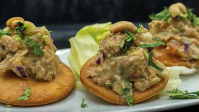 Bocconcini di pollo marinato con yogurt, cipolla, aglio, zenzero, spezie indiane, crema di mandorle e anacardi